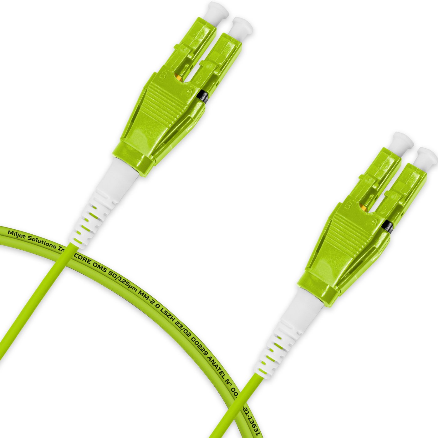 Cordão Óptico 5m, LC/UPC-LC/UPC Uniboot Duplex MM OM5 G651.1 50/125 BIF 2.0mm LSZH Verde Fibra Multimodo Miljet