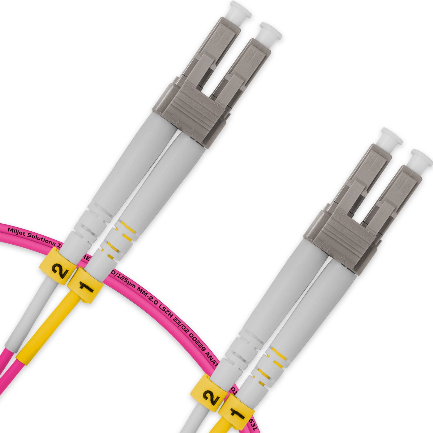 Cordão Óptico 2m, LC/UPC-LC/UPC, MM G651.1 50/125, OM4 Duplex 2.0mm LSZH Magenta, Fibra Multimodo Miljet