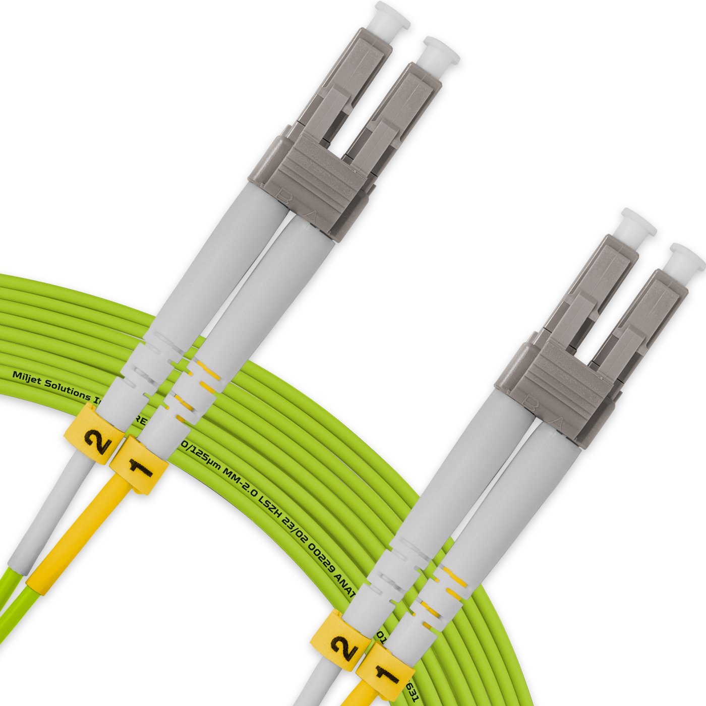 Cordão Óptico 20m, LC/UPC-LC/UPC, MM G651.1 50/125, OM5 Duplex 2.0mm LSZH Verde, Fibra Multimodo Miljet