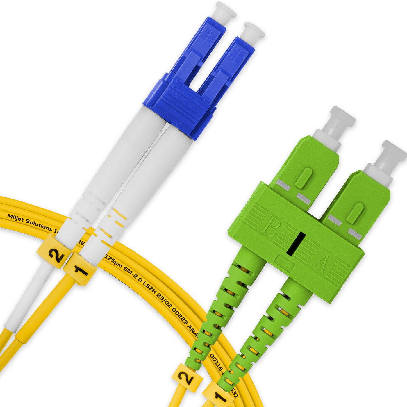 Cordão Óptico 3m, LC/UPC-SC/APC, SM BLI G657-A1 9/125, OS2 Duplex 2.0mm LSZH Amarelo, Fibra Monomodo Miljet