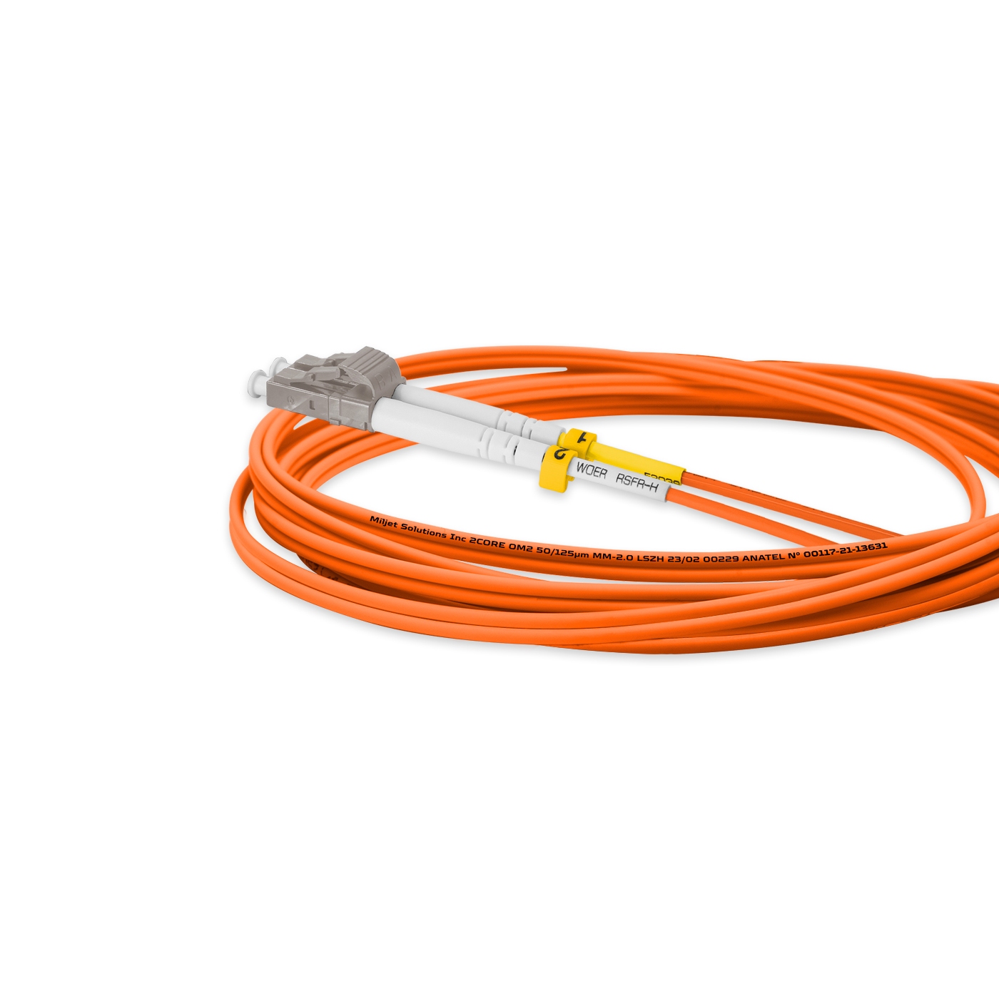 Cordão Óptico 5m, SC/UPC-SC/UPC, MM G651.1 50/125, OM2 Duplex 2.0mm LSZH Laranja, Fibra Multimodo Miljet