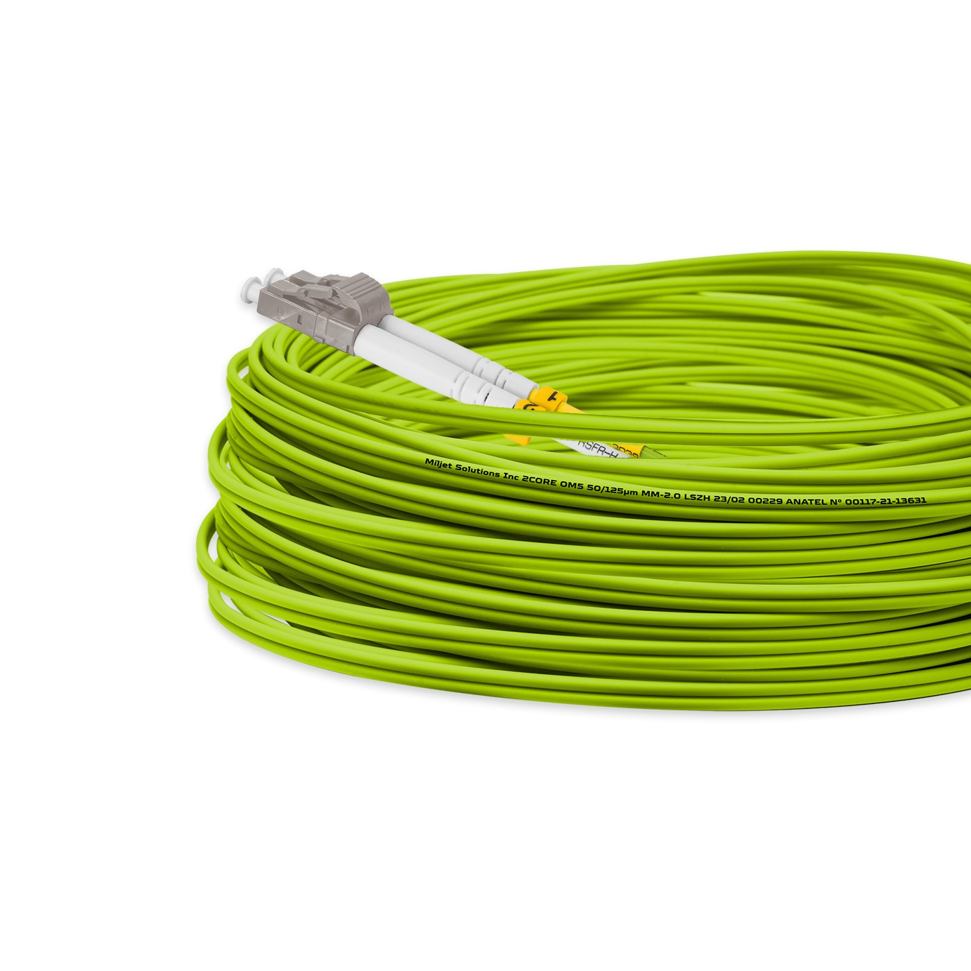Cordão Óptico 50m, LC/UPC-LC/UPC MM 50/125, OM5 G651.1 Duplex 2.0mm LSZH Verde, Fibra Multimodo Miljet