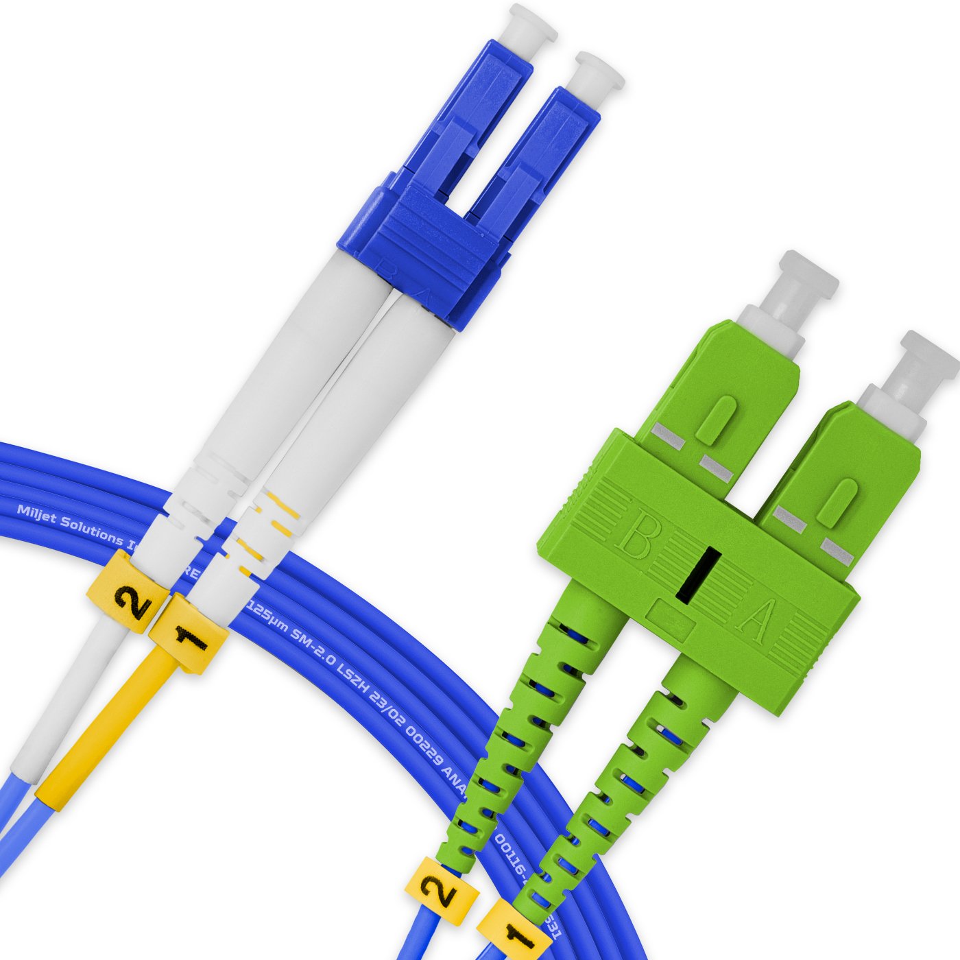 Cordão Óptico 5m, LC/UPC-SC/APC, SM BLI G657-A1 9/125, OS2 Duplex 2.0mm LSZH ABNT Azul, Fibra Monomodo Miljet