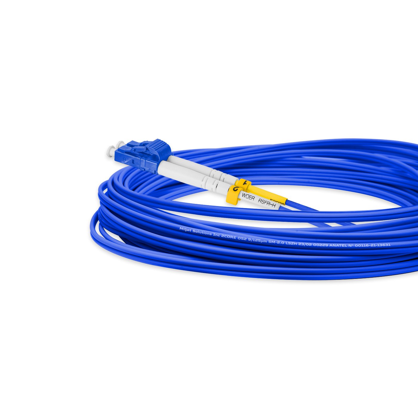 Cordão Óptico 10m, LC/UPC-LC/UPC, SM BLI G657-A1 9/125, OS2 Duplex 2.0mm LSZH ABNT Azul, Fibra Monomodo Miljet